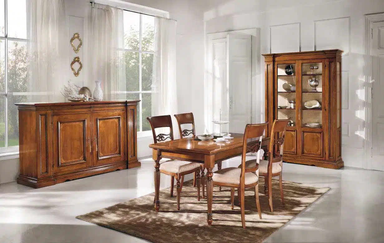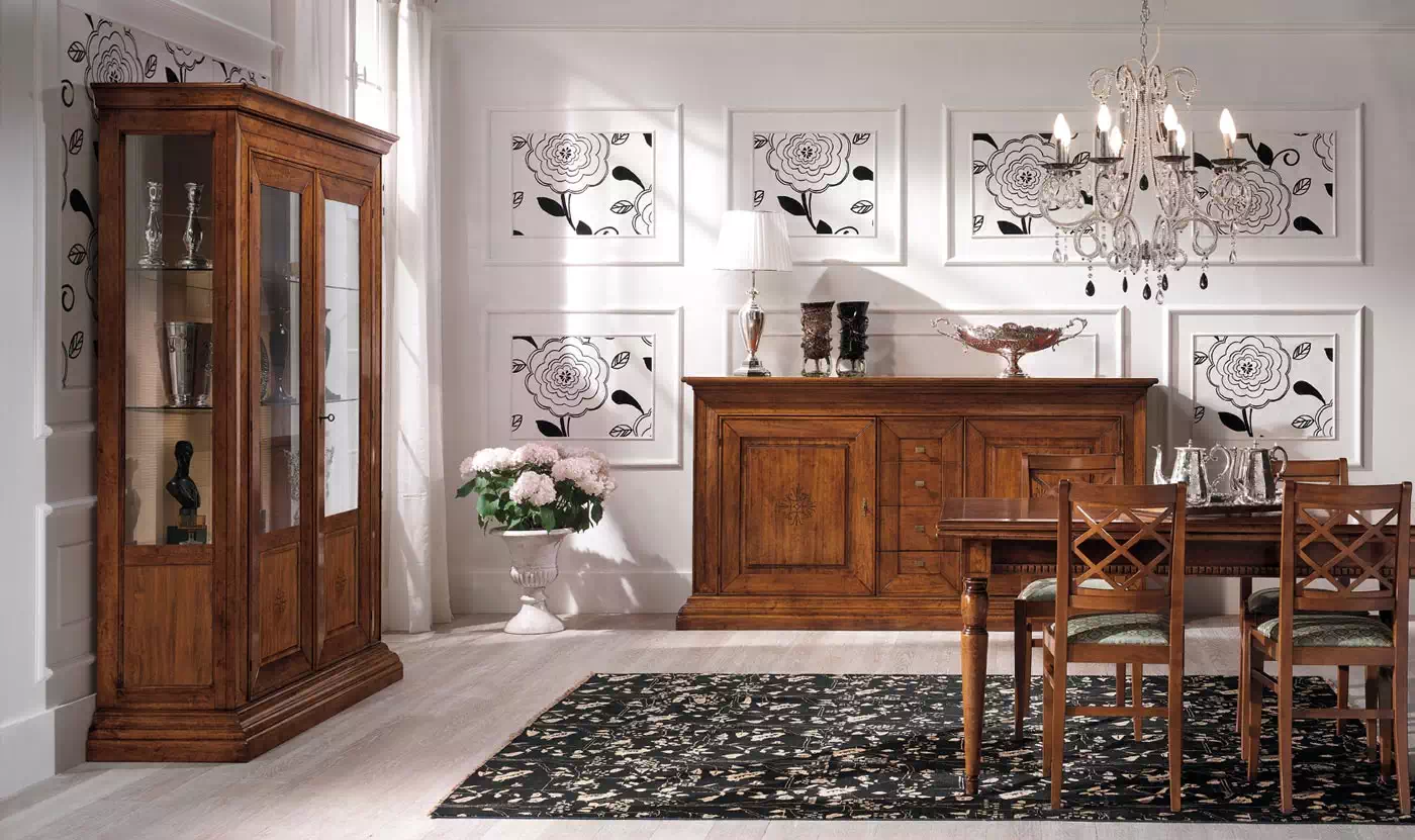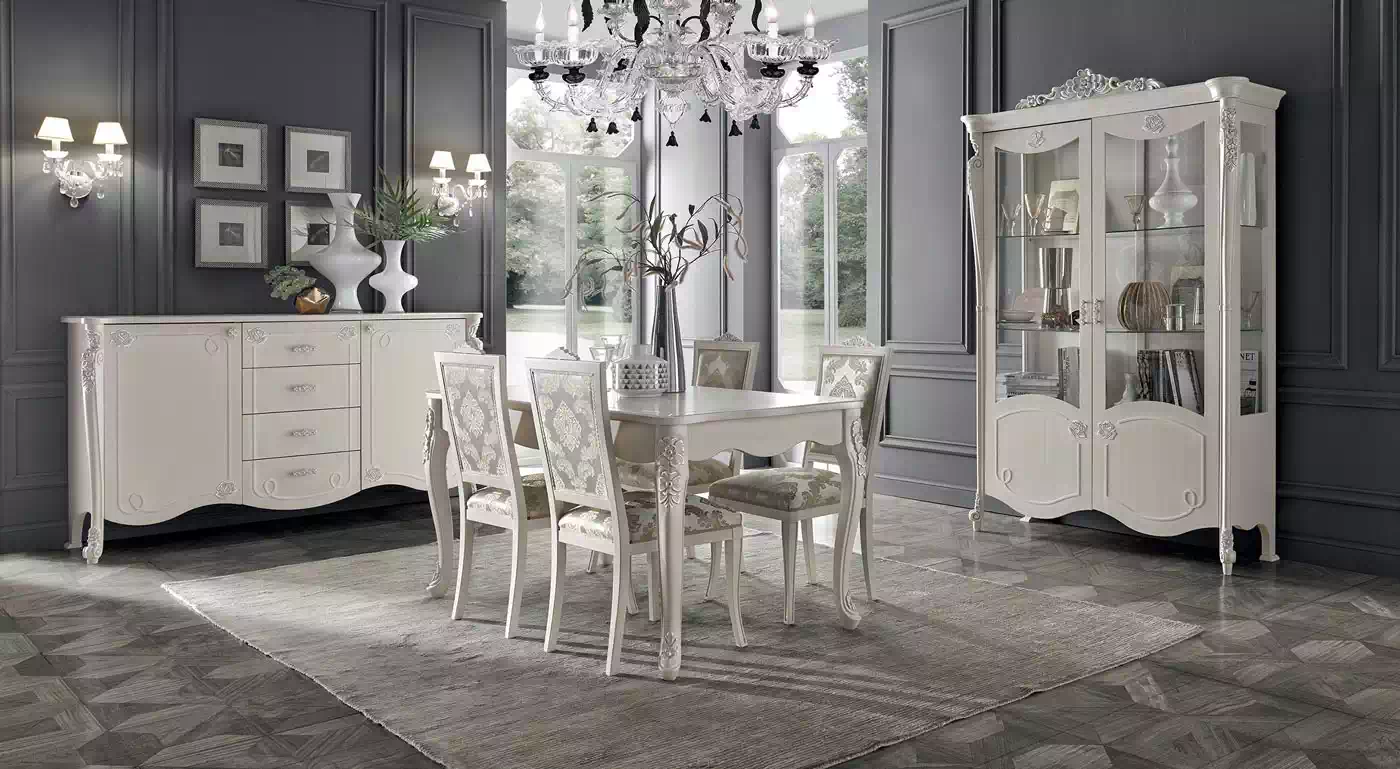 Offriamo arredo dallo stile classico, contemporaneo o shabby chic in varie composizioni per assecondare le esigenze di tutti gli ambienti. Ogni articolo è studiato per abbinarsi al meglio agli ambienti ampi tanto quanto a quelli ristretti, grazie a soluzioni fisse, pensili angolari, componibili e modulari. I mobili per sale complete comprendono corredi con tavoli, sedie, cassettiere, armadi, cristalliere, vetrine, specchi e ogni altro complemento di design per rendere ogni angolo la vera rappresentazione della tua personalità.